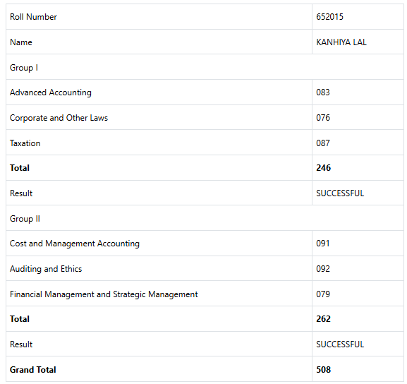 CA Intermediate January 2026 AIR 1 Marksheet: --- Kanhiya Lal