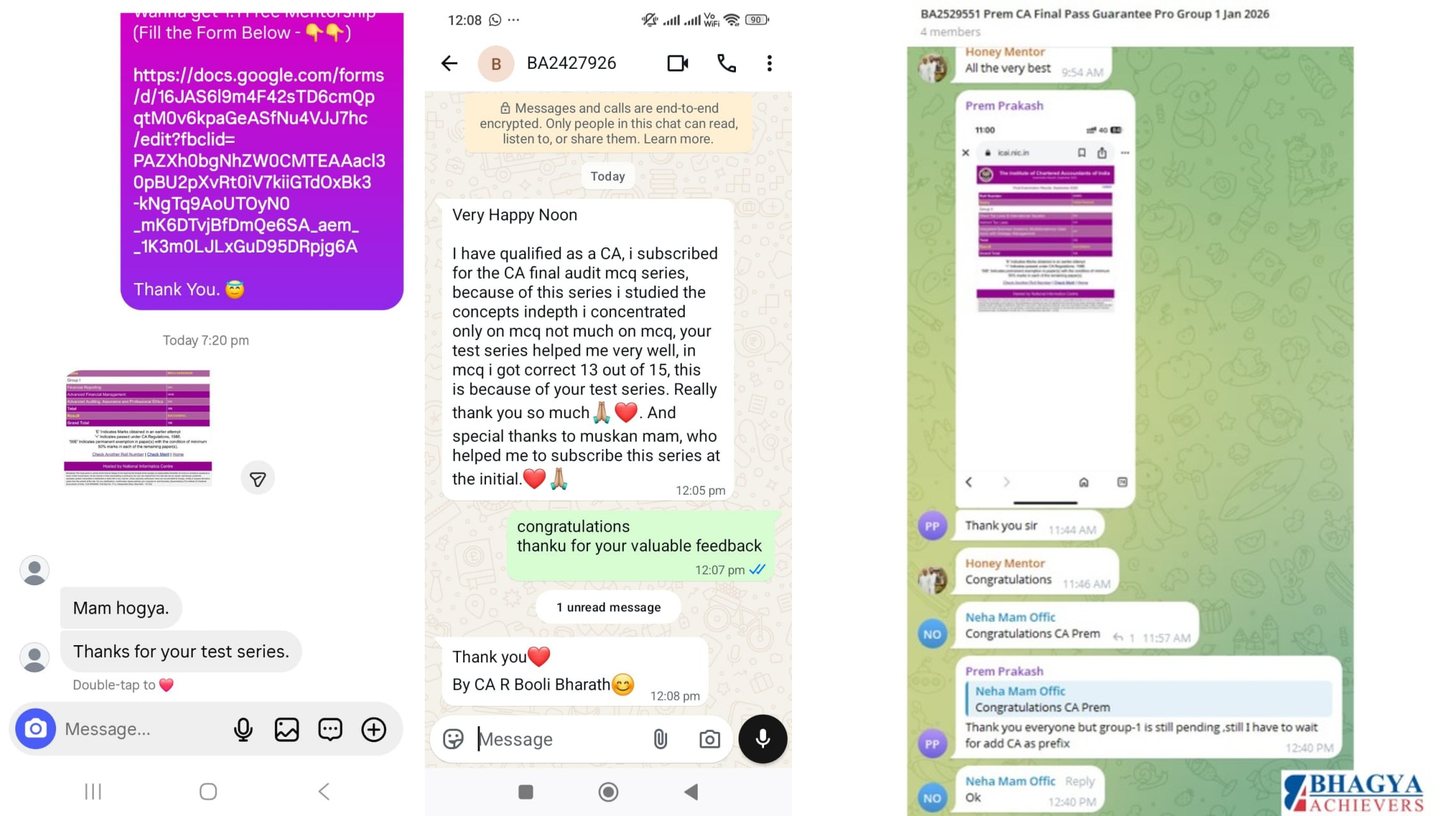 Our success is best reflected through our students. Many CA Final toppers and high scorers have shared how Bhagya Achievers played a crucial role in their journey.
