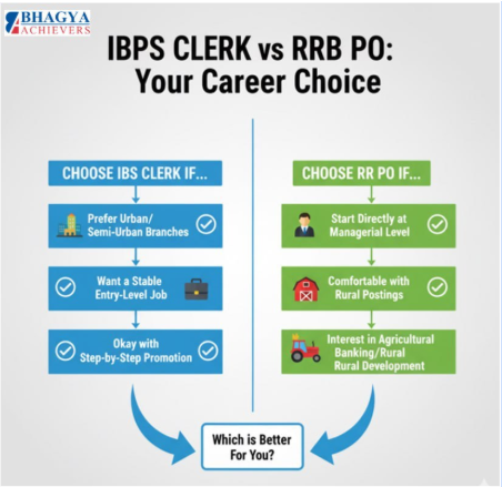 Ans: Choose RRB PO bank exam for faster career growth and IBPS Clerk for stability and balance.